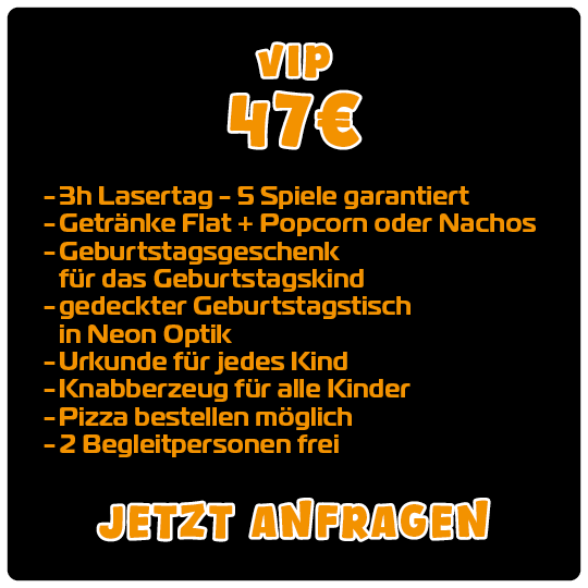UNSER ANGEBOT FÜR KINDERGEBURTSTAGE: Lasertag ab 25€ pro Kind – buchbar ab 6 Personen. Hier unsere Angebote!